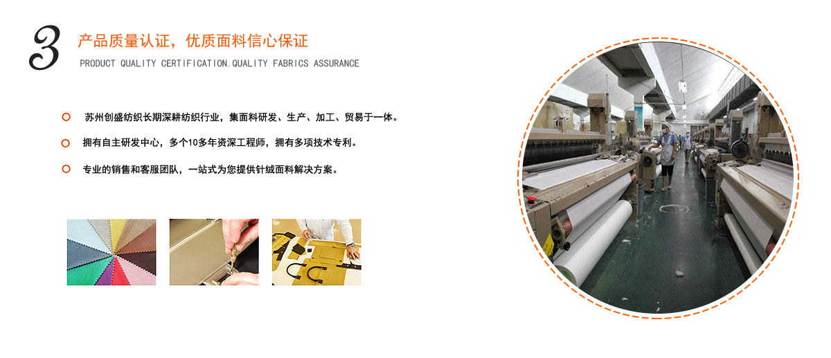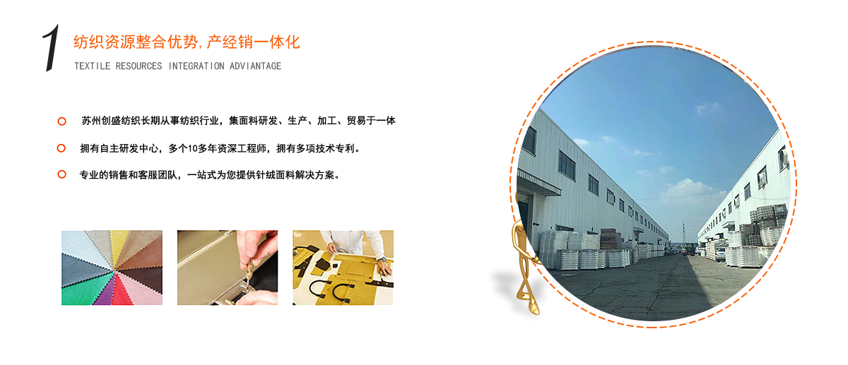蘇州創(chuàng)盛紡織有限公司坐落于江蘇省吳江市盛澤鎮(zhèn)圣塘村,自2004年成立以來,一直致力于中高檔功能型環(huán)保梭織面料的研發(fā)與經(jīng)營(yíng),創(chuàng)盛紡織在專注幾十年面料經(jīng)營(yíng)中,不斷的完善管理,嚴(yán)格的把控品質(zhì),精準(zhǔn)的創(chuàng)新產(chǎn)品,從而讓每一款面料滿足不同客戶的個(gè)性化需求,產(chǎn)品廣泛適用于:嬰兒用品、戶外旅行用品、運(yùn)動(dòng)休閑用品、箱包手袋、家庭收納用品等領(lǐng)域。